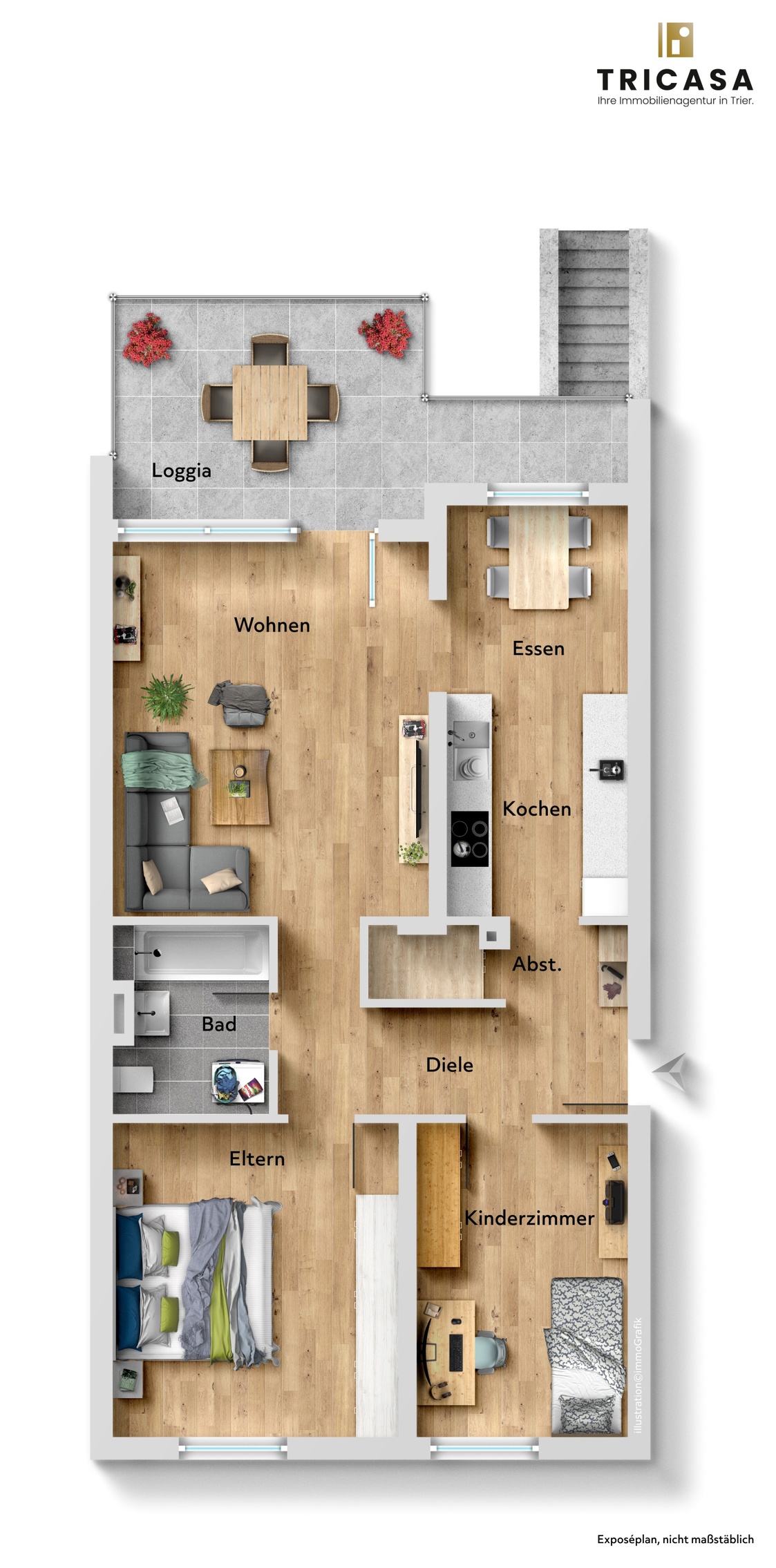den Essbereich angeschlossen und ermöglicht kurze Wege im Alltag. Das helle