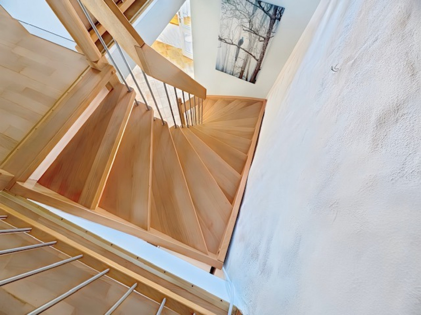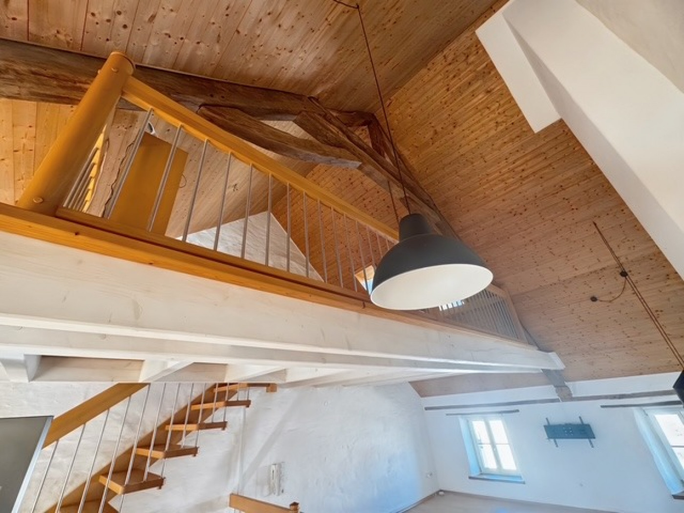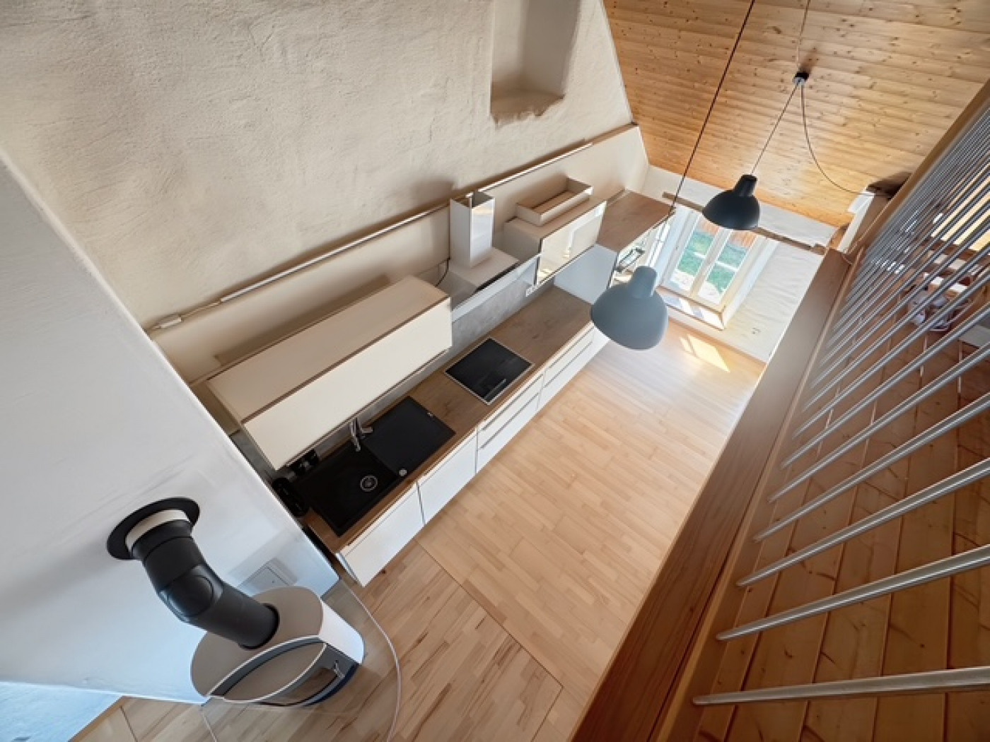 Noch eine Treppe höher und Sie stehen in der Galerie. Der Blick geht hinunter in den Wohnbereich